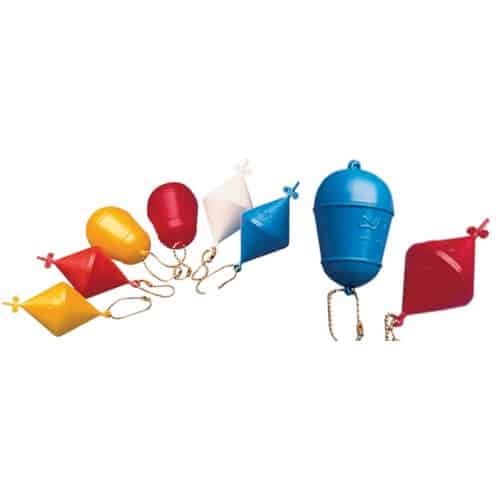 Portachiavi galleggiante con catenella. Modelli assortiti a boa biconica e sferica.