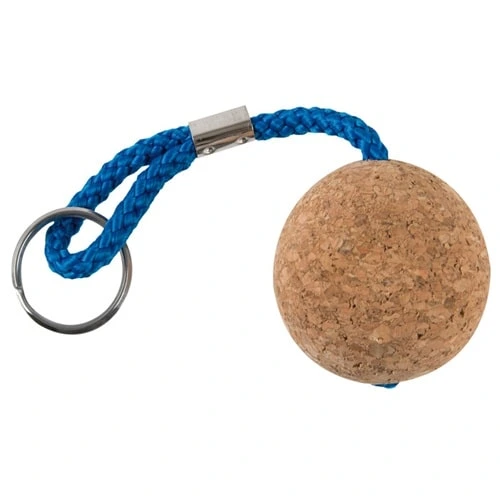 Portachiave galleggiante in sughero tondo con cordino di colore bianco onero in base alla disponibilità.