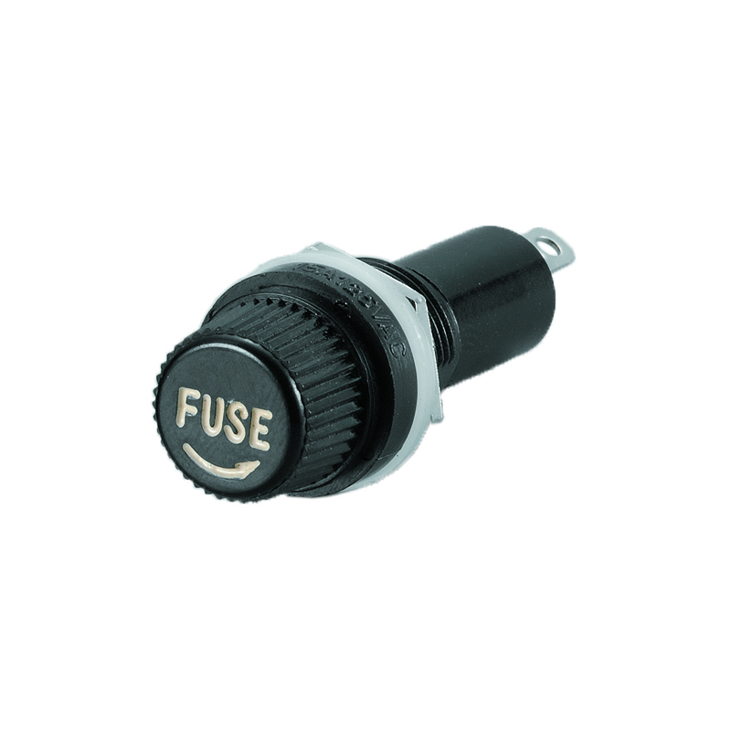 Portafusibile da incasso Max 10A, tappo a vite, contatti in ottone argentato, corpo in makrolon caricato vetro, foro Ø mm. 16