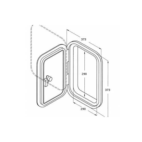 Portello sportello calpestabile stagno in plastica rinforzata a nido d’ape apribile a 180°; sportello con doppio sistema di apertura: uno classico e uno sfilabile.Il sistema sfilabile consente di aprire lo sportello in spazi ristretti con montaggio su ponte o a paratia.
