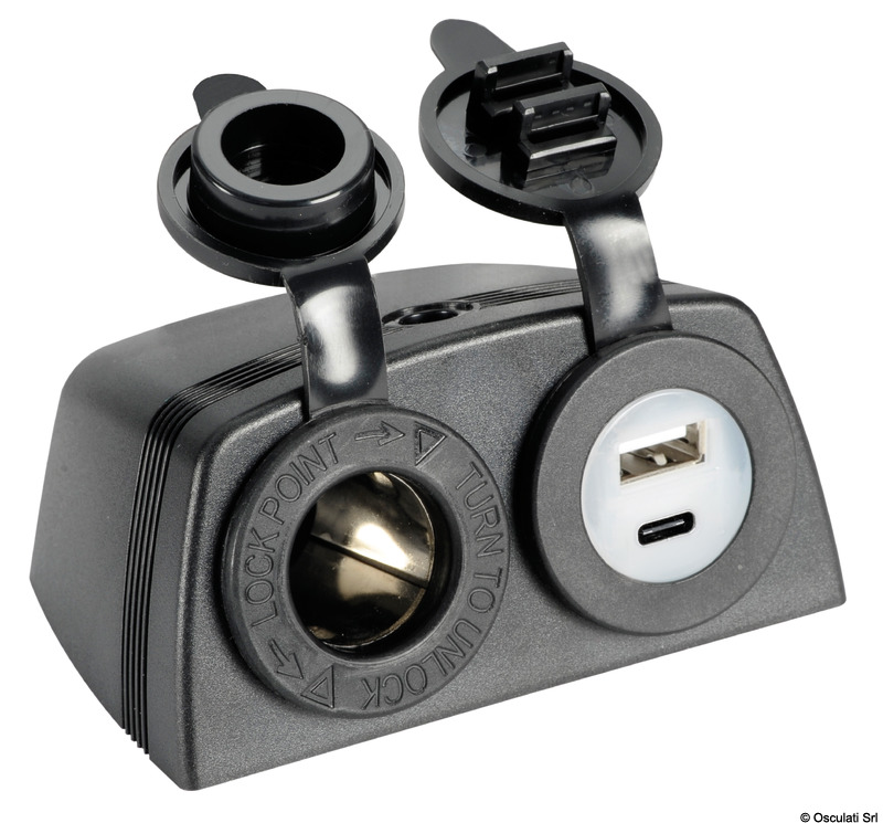 Fabbricate in nylon con cappuccio di protezione per renderle impermeabili. Ingresso 12/24 V. Uscita USB 5V.