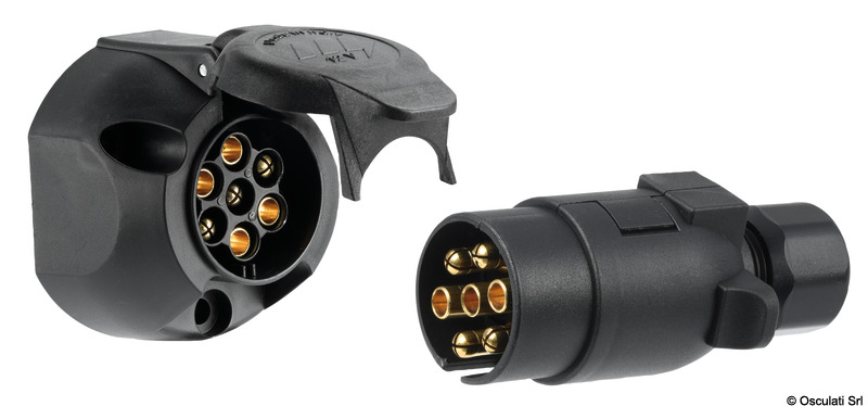 Regolamentare per rimorchio. In ABS nero e contatti interni in ottone. Modello di lunga durata nel tempo e completamente inossidabili.