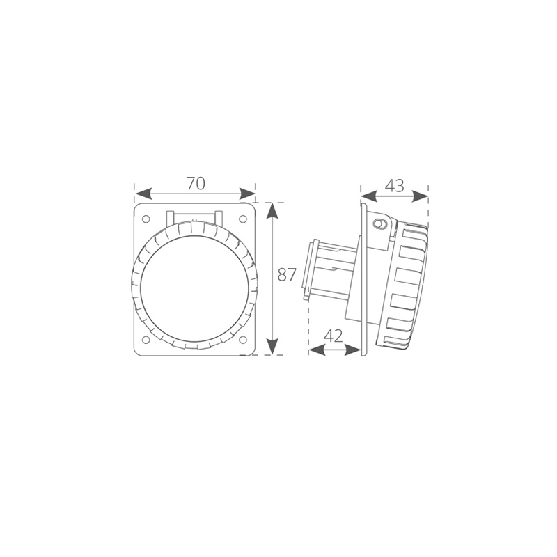 Presa inclinata da incasso stagna 16A grado di protezione IP67. Realizzate in conformità alle norme CE – EN60309-1 – EN60309-2
