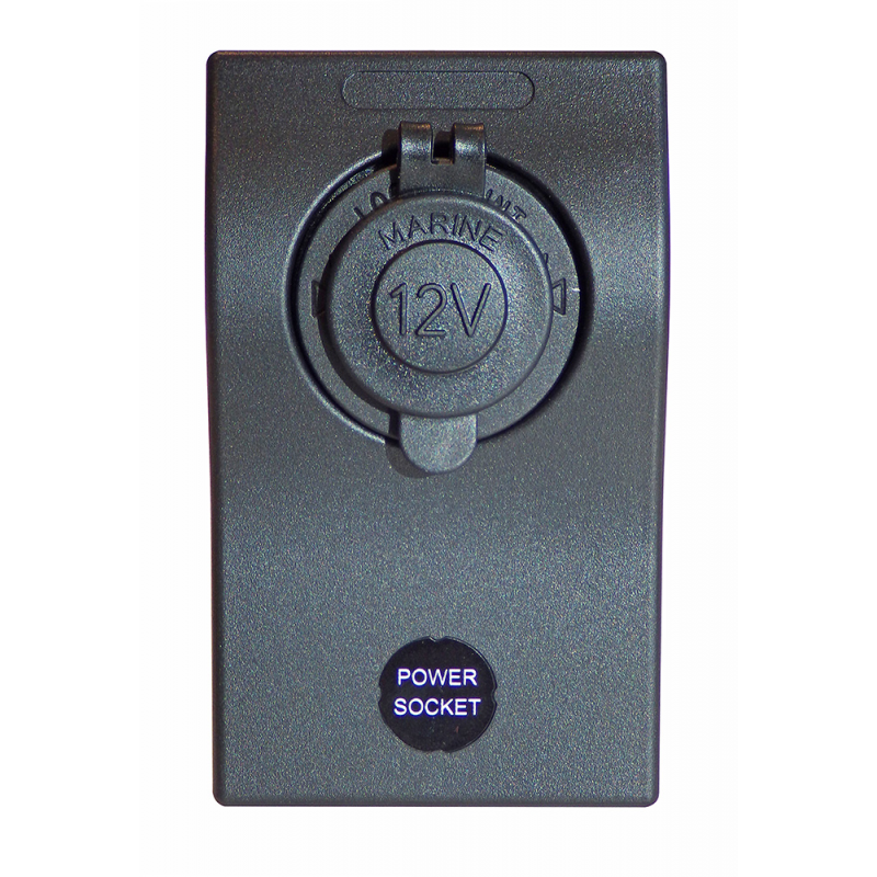 Pannello in plastica con presa accendisigari con cappuccio di protezione. Fissaggio con 4 viti anteriori nascoste da una placca di rifinitura. Magnetotermico di protezione da 15A Max.