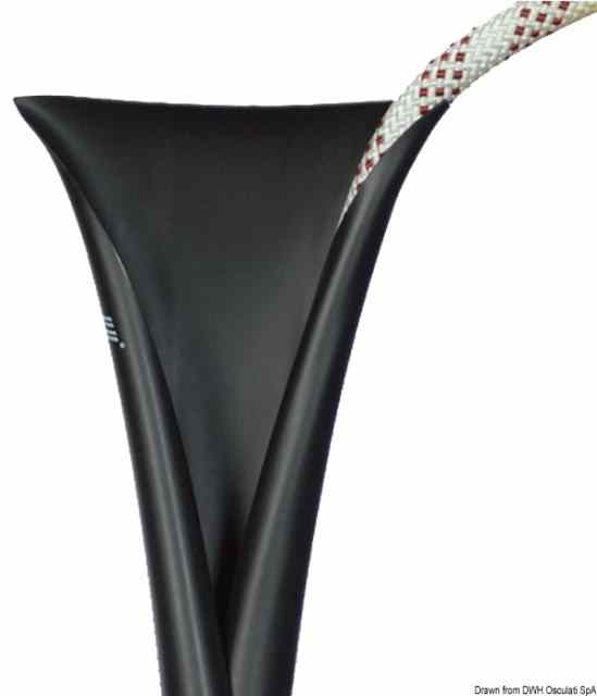 Fabbricato in poliuretano autoarrotolante, protegge le cime dallo sfregamento nei passacavi/cubie della barca o negli anelli/bitte della banchina. Si può montare senza bisogno di disfare impiombature o altro.