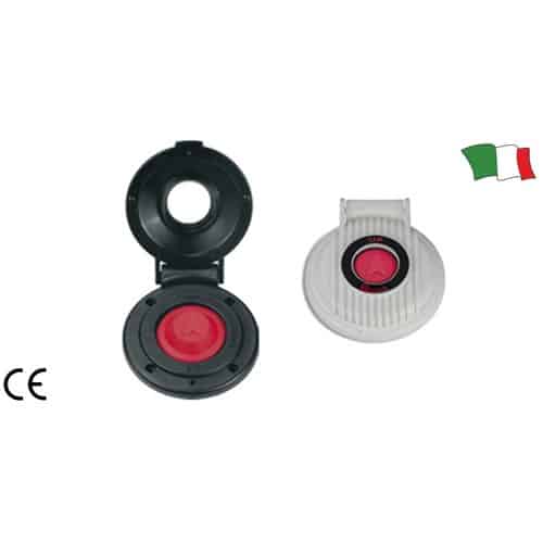 Pulsante a piede per l’azionamento del salpa ancora, fornito con coperchio di protezione per evitare la pressione accidentale.
