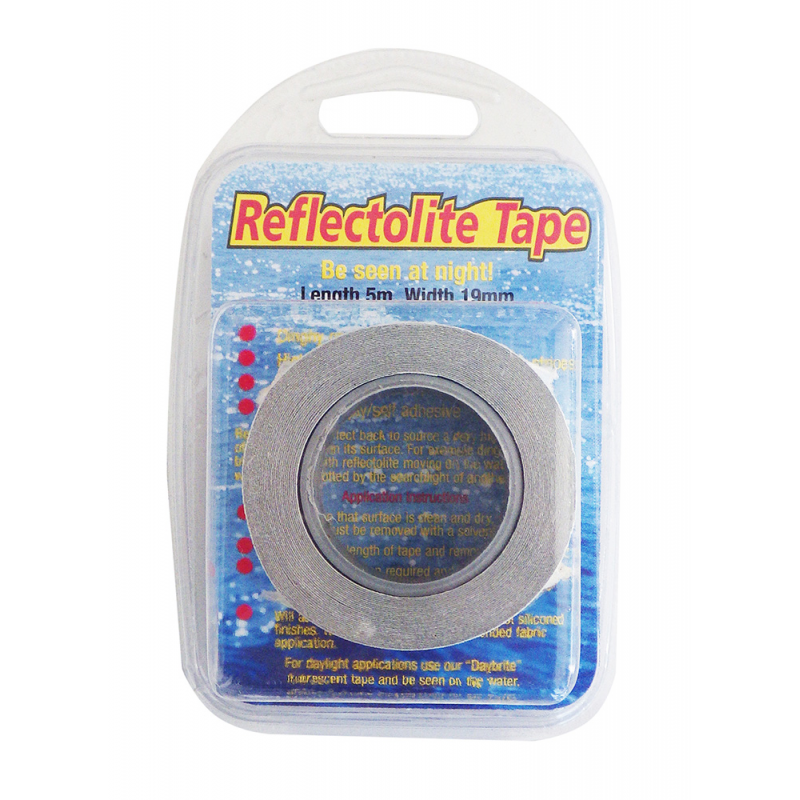 Nastro adesivo riflettente da utilizzarsi per segnalare e rendere visibile di notte ostacoli, sporgenze, rimorchi, tender ed ogni altro oggetto che si voglia identificare.