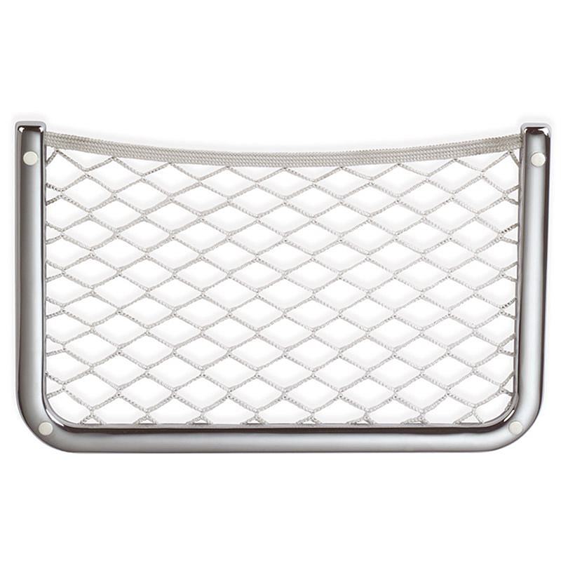 Rete portaoggetti con filetto superiore in treccia elastica. Fissaggio con viti. Dimensioni mm 345X200