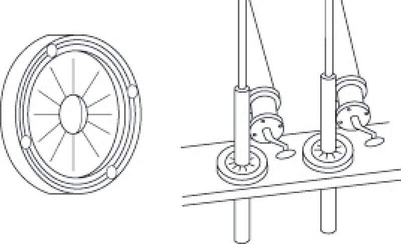 Elastico ad alette mobili da fissare a paratia. Utilizzabile anche come ricettacolo per portacanne. Di colore bianco.