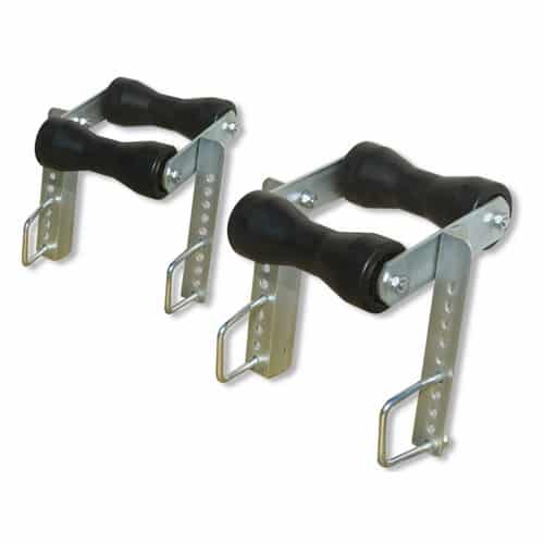 Rullo doppio centrale basculante e regolabile, con supporti per tubo quadro di diverse misure.