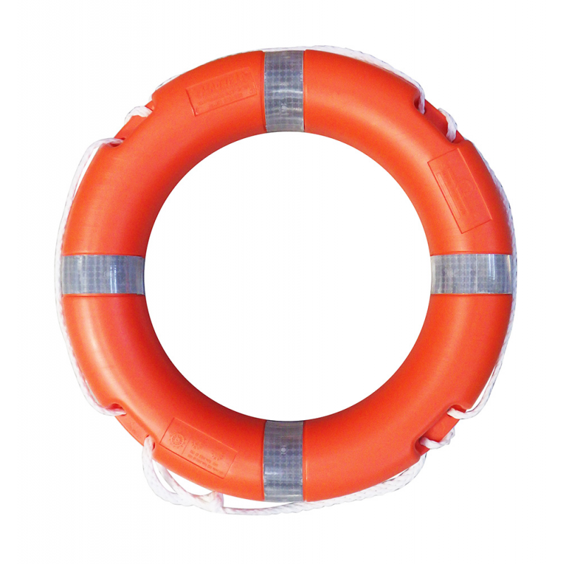 Salvagente anulare R.I.Na. (0474) n. CCE 8999/2 approvato SOLAS 74/83-M.E.D.96/98-DM n.385. MED 2014/90/EU, IMO Res. MSC 81(70) SOLAS 74Con strisce riflettenti, struttura portante in materiale plastico indistruttibile,ripieno di poliuretano espanso. Per nautica da diporto.Dim. Ø est. cm. 61, Ø int. cm. 41, cm. 12 h. Peso Kg. 2,5.