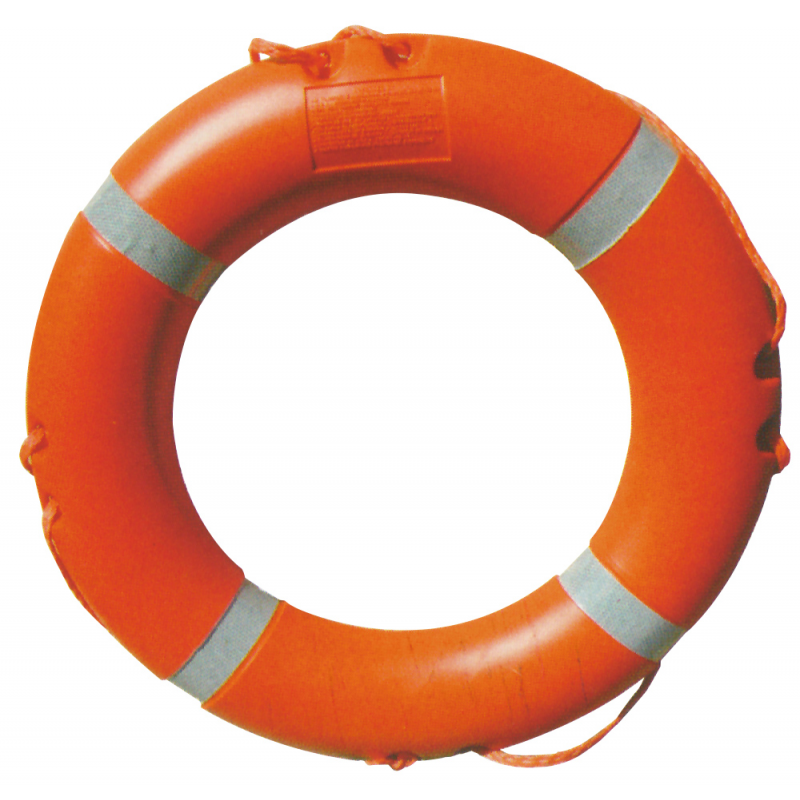 Salvagente anulare R.I.Na. (0474)n. CCE 42499 approvato SOLAS 74/83 – 96/98-M.E.D.-DM n.385. MED 2014/90/EU, IMO Res. MSC 81(70) SOLAS 74 Con strisce riflettenti, struttura portante in materiale plastico indistruttibile, ripieno di poliuretano espanso. Dim. Ø est. cm. 72, Ø int. cm. 43,5, peso kg.4
