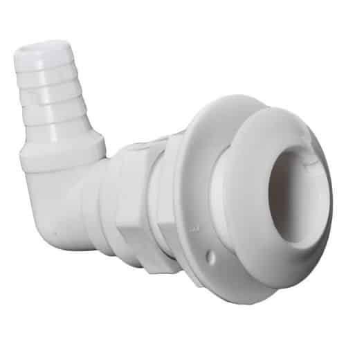 Scarico In plastica bianca con portagomma a 90°, come da norma CE solo per un impiego sopra la linea di galleggiamento.