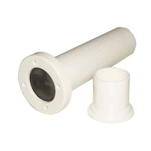 Scarico a mare gigante in nylon bianco, autosvuotante con valvola di non ritorno per paratie con spessore da mm 65/215, telescopico.