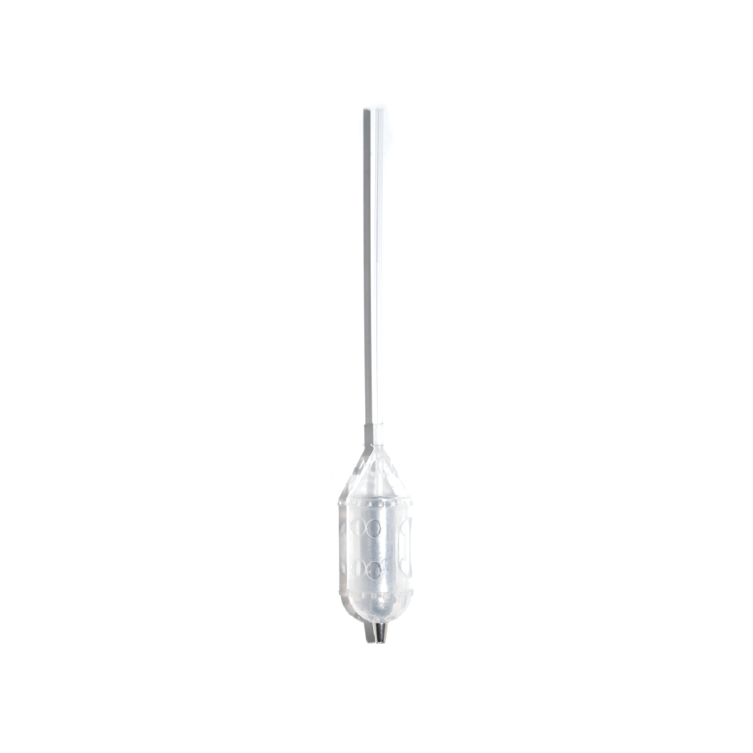 Bombarda trasparente con pasturatore e zavorra. Ideale per pasturare con bigattini. Ottimo per la pesca di superfice in mare o in acqua dolce.