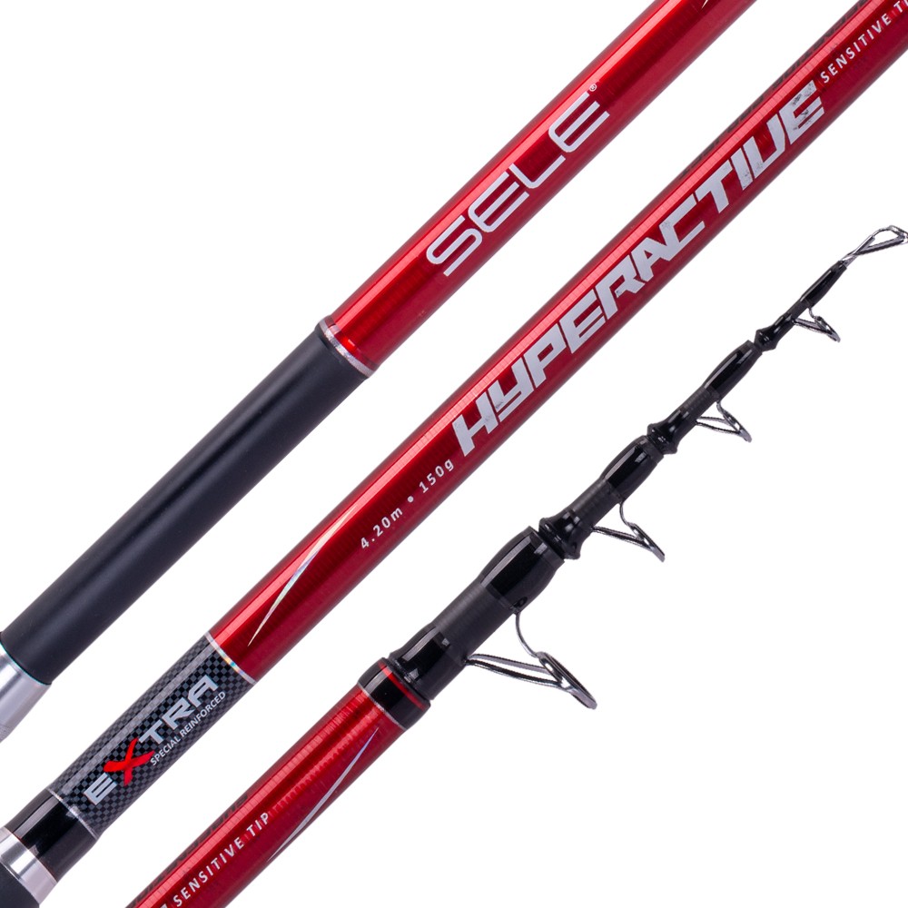 Sele Hyperactive serie di canne proposta in tre potenze per far fronte ad ogni esigenza del surf. Fuso in carbonio alto modulo leggero e reattivo e vetta solida molto sensibile. Anelli di ottima qualità e placca ergonomica completano questa canna dall’ottima qualità prezzo.