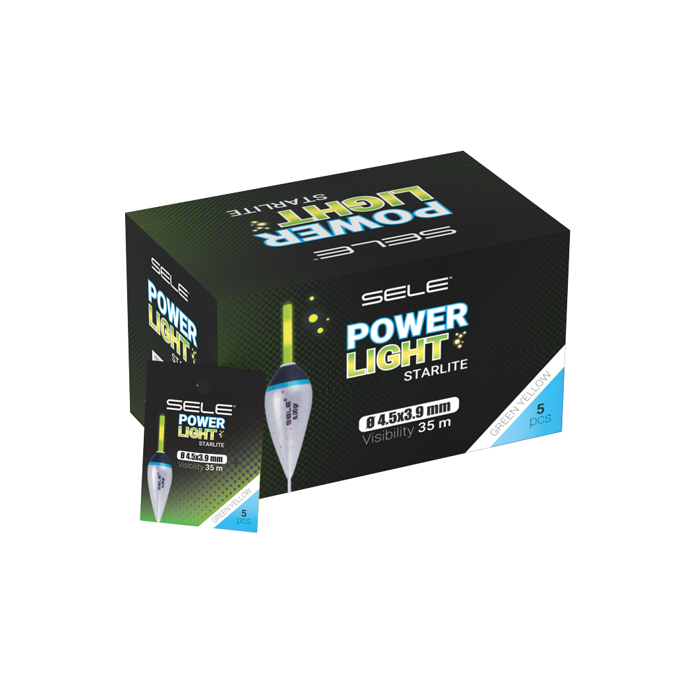 Power light starlight da pesca per galleggianti e per le vette delle canne da pesca, durata massima di 12 ore. Indicato per la pesca a surfcasting e per la pesca a fondo. Contine 50 blister da 5 pezzi per blister.