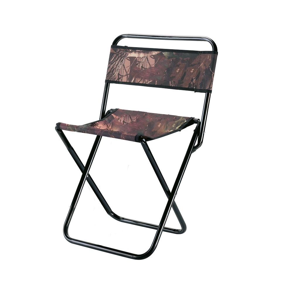 Sedia richiudibile mimetica, struttura in alluminio ed elementi in stoffa.