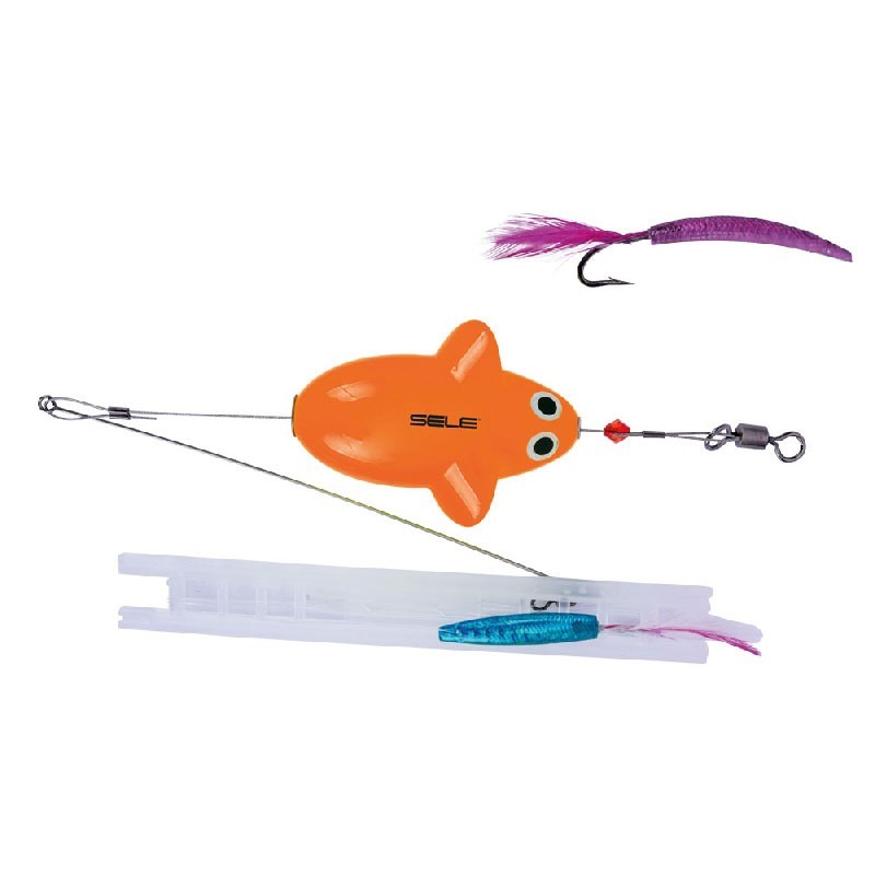 Artificiale per la traina di superficie, assemblato con cavetti e lenza, completo di girelle e spintroll. Ottimo per la traina degli alletterati.