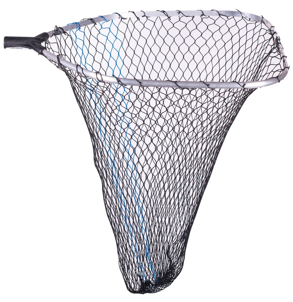 Testa di guadino quadra disponibile con rete a maglia fitta o larga. Realizzata con telaio in alluminio e innesto compatibile esclusivamente con manici con aggancio a pulsante. Modello molto robusto ideale per salpare grosse prede nella pesca dalla barca.
