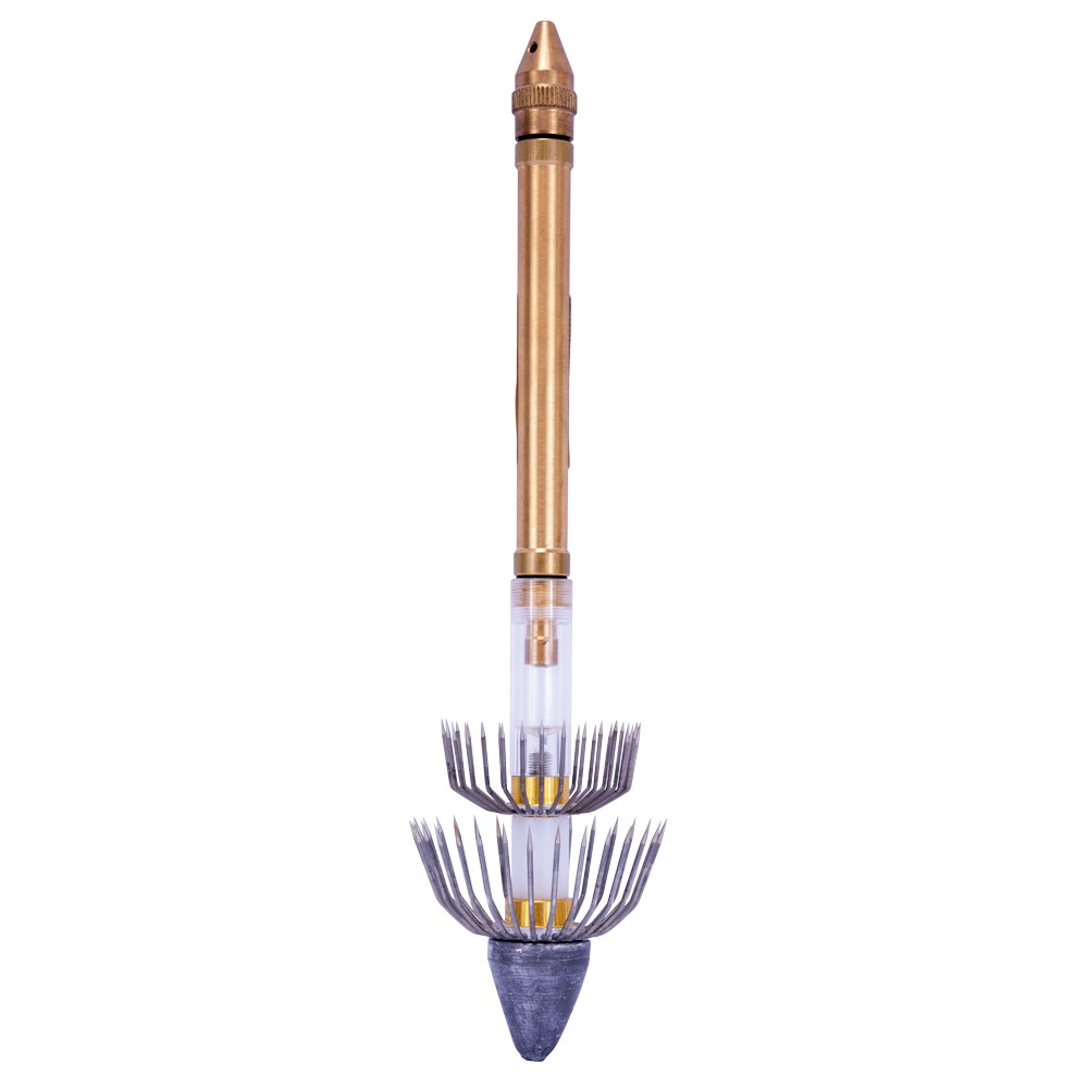 Totanara di profondità Sele, attrezzatura da pesca molto compatta e di ottima qualità. La totanara Sele presenta un corpo in ottone ed acciaio montata con doppia corona in acciaio, indicato per la pesca in mare e per la cattura di calamari, seppie e totani. Corpo in ottone e acciaio, corona in acciaio, modello a led ad acqua non incluso.