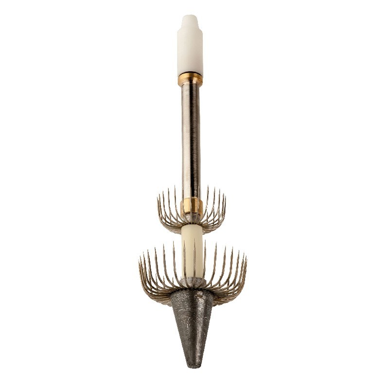 Totanara di profondità Sele, attrezzatura da pesca molto compatta e di ottima qualità. La totanara Sele presenta un corpo in ottone ed acciaio montata con doppia corona in acciaio, indicato per la pesca in mare e per la cattura di calamari, seppie e totani. Corpo in plastica e corona in acciaio, modello a led ad acqua non incluso.