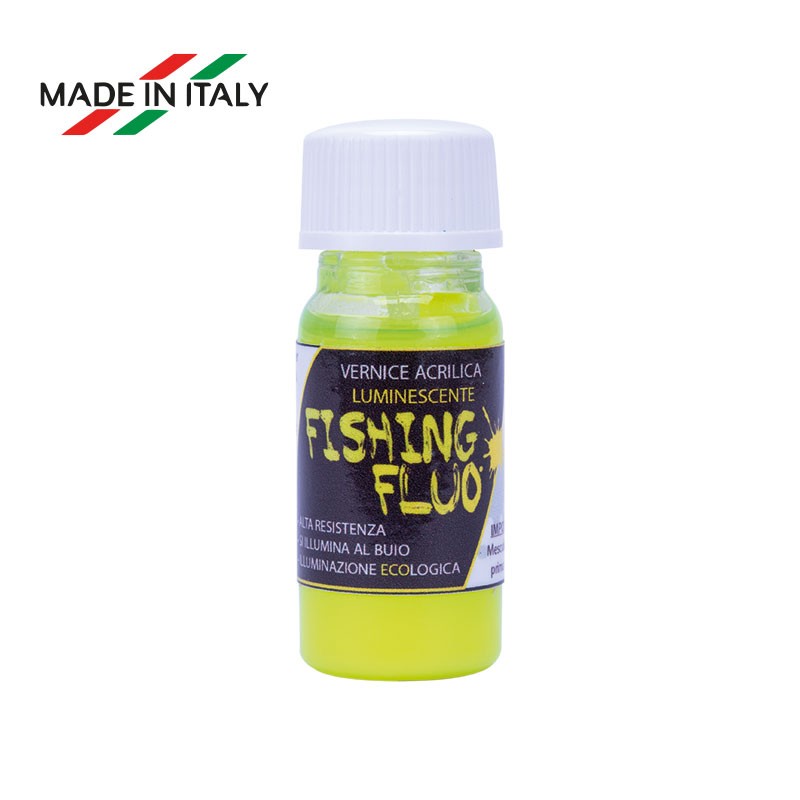 Vernice luminescente fosforescente che si illumina al buio, adatta per rendere visibili tutti i piccoli dettagli di qualsiasi prodotto da pesca. Munita di pratico pennello.