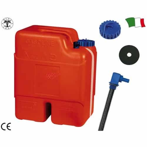 Serbatoio a tanica verticale con tappo di riempimento che funge anche da sfiato. Completo di pescante, indicatore di livello e riserva carburante.