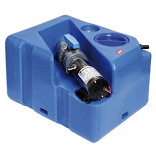 Serbatoio per acque nere fornito con maceratore elettrico già montato e pronto all’installazione con filetti femmina di carico 1” 1/2 + 3/4”; filetti femmina di sfiato 3/4”; filetti femmina di scarico emergenza manuale 1” 1/2; incavi per ganci di fissaggio, valvola di intercettazione per poter staccare il maceratore in caso di manutenzione; flangia 5 fori pre-forata per sensore di livello (sensore da ordinare a parte); protezione per sensore di livello. Fabbricati secondo ISO 8099.