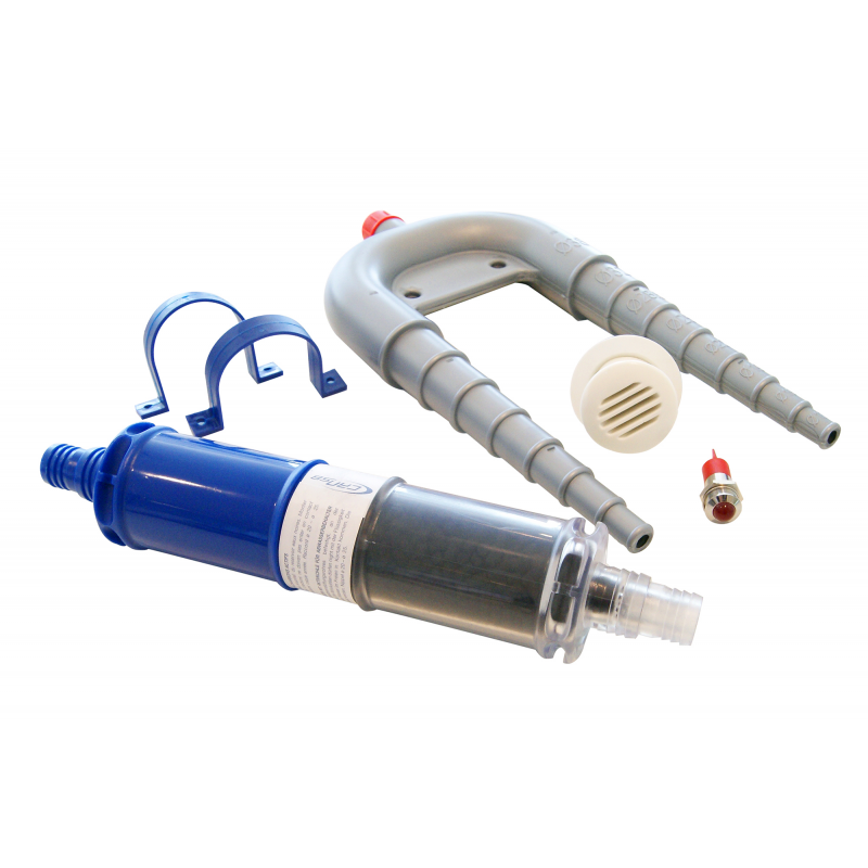 Serbatoio acque nere e grigiein plastica completo di impianto per lo svuotamento con pompa autoadescanteJABSCO 12V e sensore di livello che può funzionare a 240-33 Ohm. Portata lt/min 19 portagomma in/out Ø mm. 38.