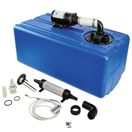 Kit di acque scure con la pompa maceratore montata e già collegata al serbatoio.