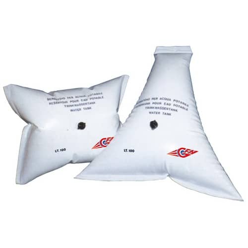 Serbatoio flessibile per acqua potabile di forma rettangolare.