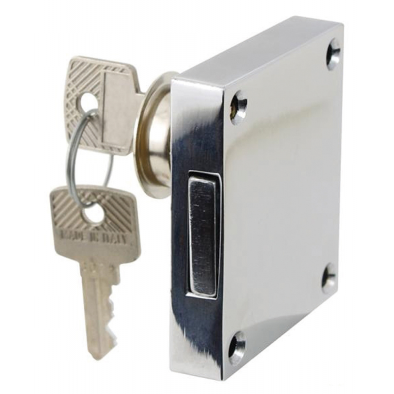 Serratura in ottone cromato da appoggio a due mandate per porte. Accessori barca e camper.