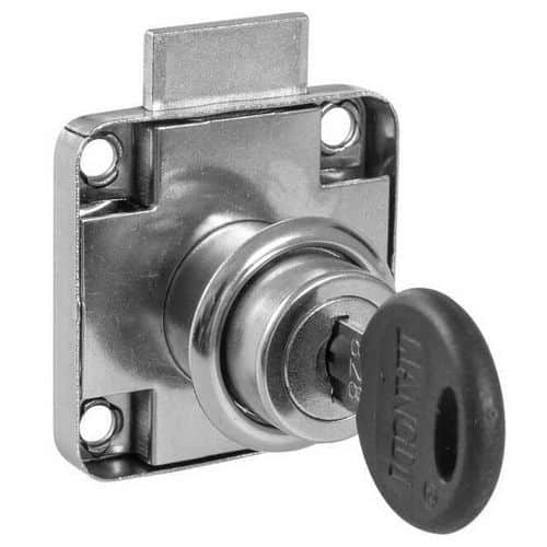 Serratura compatta in acciaio inox stampato per cassetti, porte e portelli, completa di doppia chiave.