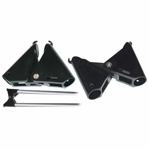 Snodo a 90° per tendalini in policarbonato nero ad alta densità, resistente ai raggi UV.