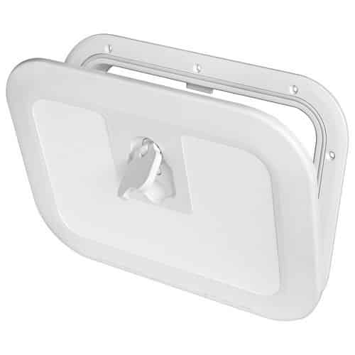 Coperchio carenato, nasconde totalmente il telaio con cerniere completamente a filo, installabile su qualsiasi unità da diporto con categoria di progettazione A, B, C, D in area II a, III, IV. Grado di tenuta 2.