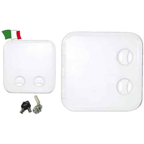 Sportello quadrato calpestabile in ABS bianco.