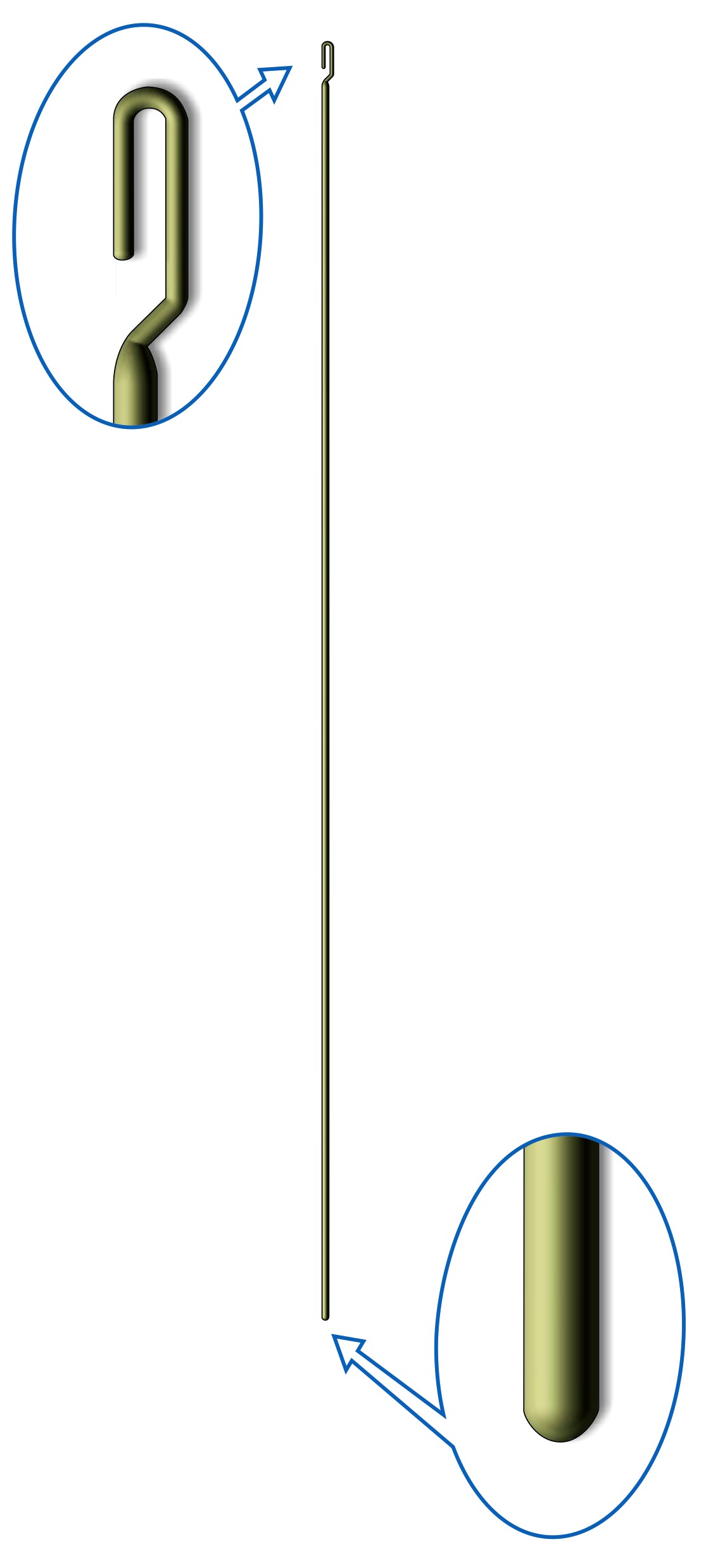 Aghi passafilo in acciaio inox realizzati con macchinari di alta precisione, sono ottimi per l’innesco del bibi. Stelo sottilissimo Ø 0,8 mm, punta arrotondata, gancino piccolissimo.