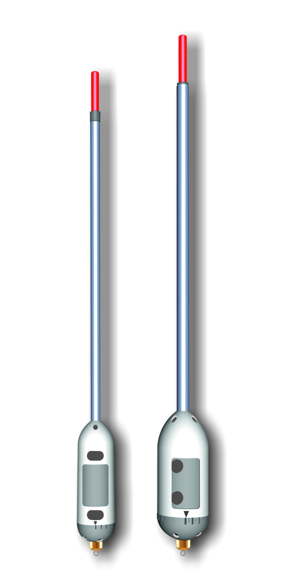 Galleggianti pasturatori studiati per la pesca di superficie. La regolazione della grandezza dei fori permette di variare la quantità di uscita delle esche.