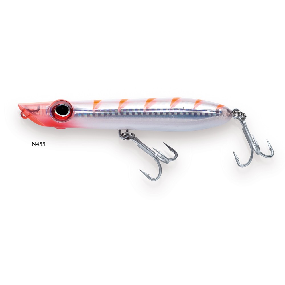 Popper dalla particolare forma affusolata. Molto aereo-dinamico permette di raggiungere notevoli distanze. Armato con 2 ancorette è l’artificiale ideale per prede combattive di superficie come serra e lecce amia. In fase di recupero azionato con forti jerckate questo artificiale alzerà molta acqua e attirerà anche predatori svogliati o distanti.