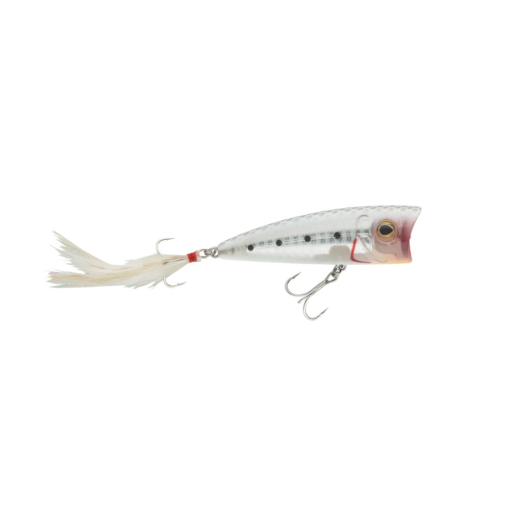 Esca artificiale di superficie, Popper VR, è ottimo sia in mare che in acque interne, eccellente per la cattura di predatori pelagici come, lecce amia e ricciole, pesci serra, barracuda e pesci black bass o spigole. Forma classica, monta 2 ancorette in acciaio ed una piumetta bianca. Disponibile in diverse colorazioni e misure.