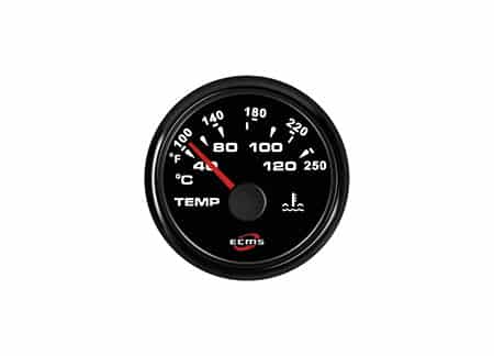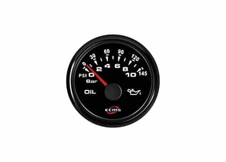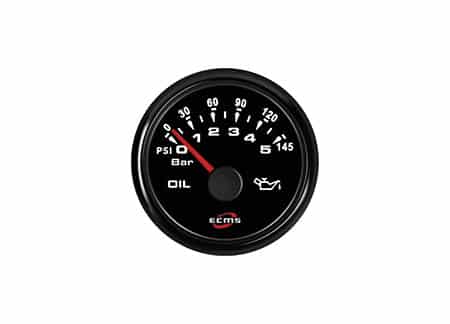 Strumentazione ecms di colore nero da 12/24V completa di cavetti e attacco molex con cornice e finitura nero, frontalino impermeabile IP67 con lente bombata anti-appannamento e quadrante con retroilluminazione personalizzabile multicolore led. Il valore standard 0-190 Ohm degli indicatori di livello 2361006 – 2361016 – 2361026 può essere facilmente modificato in 240-33 Ohm con il pulsante posteriore. L’amperometro 2361079 è completo di shunt.