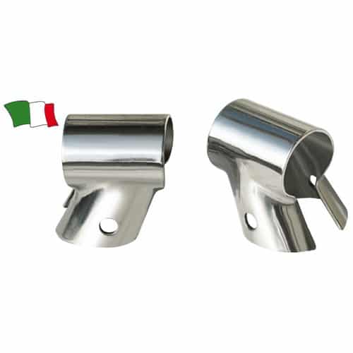 Supporto a T inclinato ed apribile in acciaio inox AISI 316 per tubi da 22 e 25mm.
