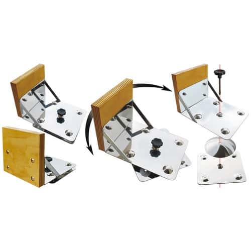 Supporto motore amovibile e girevole per l’applicazione su plancetta. Struttura in acciaio inox e tavoletta in plastica. Supporti per motori ausiliari.