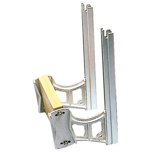 Supporto motore ausiliario con guide trafilate in anticorodal anodizzato di colore bianco, tavola in faggio verniciato ai poliuretani, regolabile in 3 posizioni. Sistema di sollevamento con blocco a motore alzato.