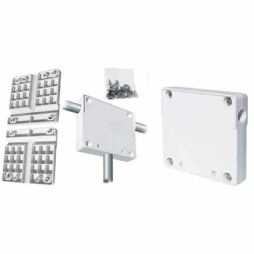 Supporto motore fisso per l’applicazione su pulpiti e battagliole con tavoletta in plastica completa di viteria per il montaggio.