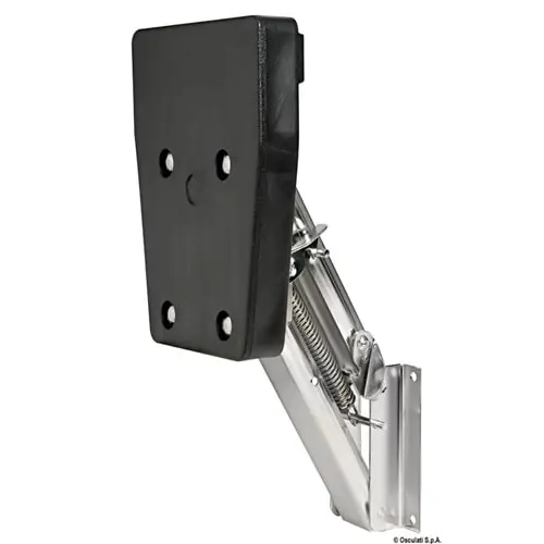Supporto motore a ribalta In acciaio inox, versione semplificata senza maniglie per regolazione intermedia, completi di tavoletta in plastica di colore nero ad alta resistenza.