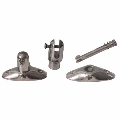 Supporto in ACCIAIO INOX AISI 316 lucidato a specchio per montaggio tendalini con perno a forcella estraibile.
