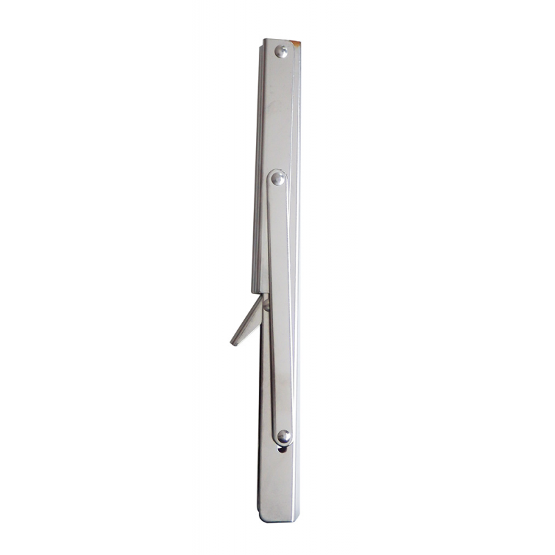 Supporto pieghevole in acciaio inox che permette di abbattere il tavolo. Carico massimo kg 150. Dim. mm 300x165x25.