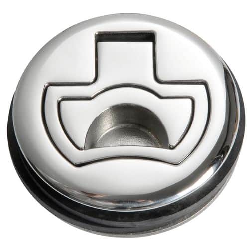 Alzapagliolo antivibrante in  acciaio inox AISI 316 lucidato a specchio con maniglia retrattile a molla, controflangia per il fissaggio.